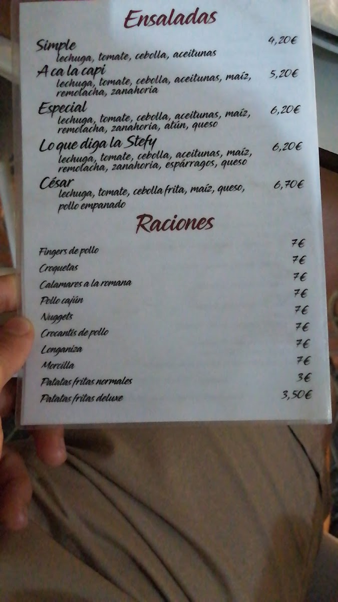 The menu at Cafeteria A Ca la Capi features a variety of options suitable for different times of day and dining preferences. Visitors can find selections ranging from breakfast items and coffee beverages to light meals and snacks. The offering includes coffee and toast, as well as a range of sandwiches such as bocadillos and baguettes, alongside salads and casual main dishes.